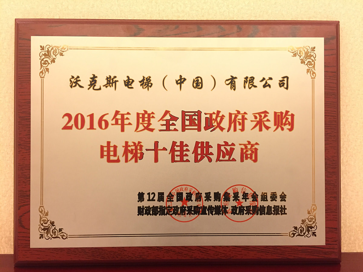 1月5日,第12屆全國政府采購集采年會在北京隆重舉行。沃克斯電梯(中國)有限公司憑借著行業內領先的制造工藝、產品質量和售后服務,榮獲“2016年度全國政府采購十佳供應商”殊榮。 全國政府采購集采年會是由財政部指定的政府采購信息報和政府采購信息網聯合主辦,已成功舉行了11屆。中央級集采機構、中央重要采購單位、軍隊采購單位、高校采購單位的優秀代表;全國重點省級和地市級的公共資源交易機構、集采機構、優秀采購單位代表、部分監管部門優秀代表等匯集一堂。 作為全國政府采購最高級別的會議,會上各項獎項的評定按照嚴格的標準執行,對企業的制造工藝、產品質量、服務能力、品牌價值等方面均有嚴苛的要求。沃克斯電梯憑借著秉持高效管理長久以來積累的優勢,成功獲得了“2016年度全國政府采購十佳供應商”這一政府采購領域的權威獎項。 近年來,沃克斯電梯在政府采購領域表現卓越,為越來越多的政府辦公樓、高等院校、交通樞紐、三甲醫院等提供完善的電梯產品解決方案。沃克斯電梯將以此次得獎為新的起點,在2017年繼續專注于提升產品質量與服務水平,為滿足廣大客戶的需求而不懈努力。