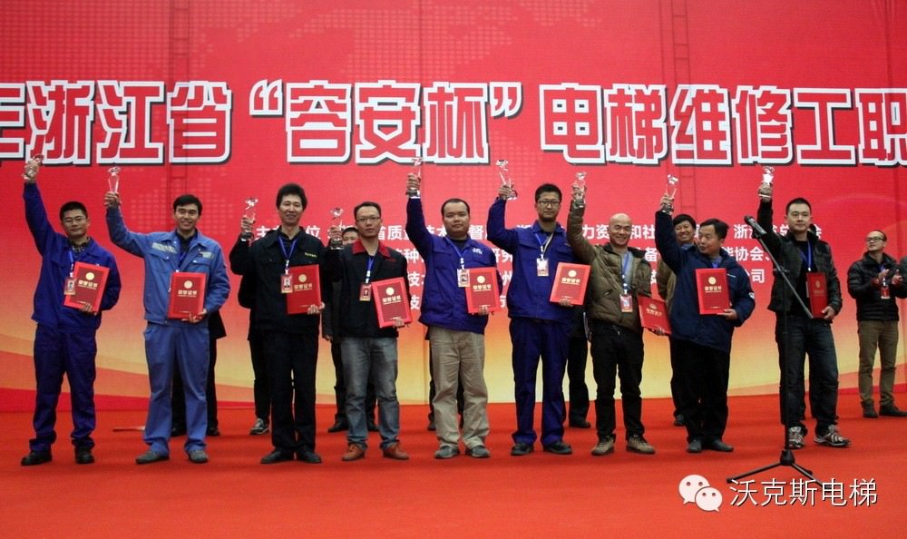 2014年12月12日,由浙江省質量技術監督局、浙江省人力資源和社會保障廳、浙江省總工會主辦的首屆2014年浙江省“容安杯”電梯維修工職業技能競賽,在杭州職業技術學院隆重舉行。本次比賽旨在提高我省電梯維修隊伍的職業技能素質,積極引導廣大電梯維修從業人員鉆研業務、愛崗敬業精神。 我沃克斯電梯安裝工程部技術骨干張真明,通過湖州技術監督局的層層選拔后,作為湖州地區派出的三個代表之一,參加了此次比賽。 本次比賽分為操作技能考核、理論知識考核、技術答辯三個項目。最終按照三個項目的綜合得分評選出一、二、三等獎。 作為省級首次針對電梯維修方面的專業比賽,省質量技術監督局對整個賽事進行了精心規劃,整個比賽不僅考驗選手的臨場發揮,更側重對選手平時專業知識及經驗積累的評測。得益于沃克斯電梯完善的安裝及售后服務體系及人員培訓機制,我公司張真明經過為期兩天的決賽,不負眾望,最終憑借其豐富的專業知識,精湛的實際操作水平,在全省參賽的26家安裝維修單位中脫穎而出,獲得了非常優秀的成績,為湖州代表團,也為沃克斯電梯爭得了榮譽。