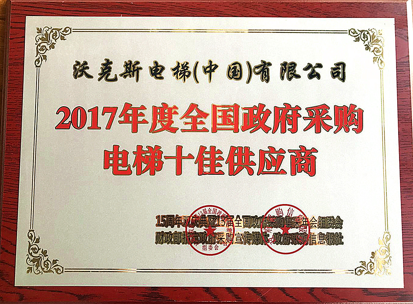 2018年1月7日,“15周年雙慶典暨13屆全國政府采購集采年會(huì)”在北京召開,沃克斯電梯憑借2017年在政府采購市場的卓